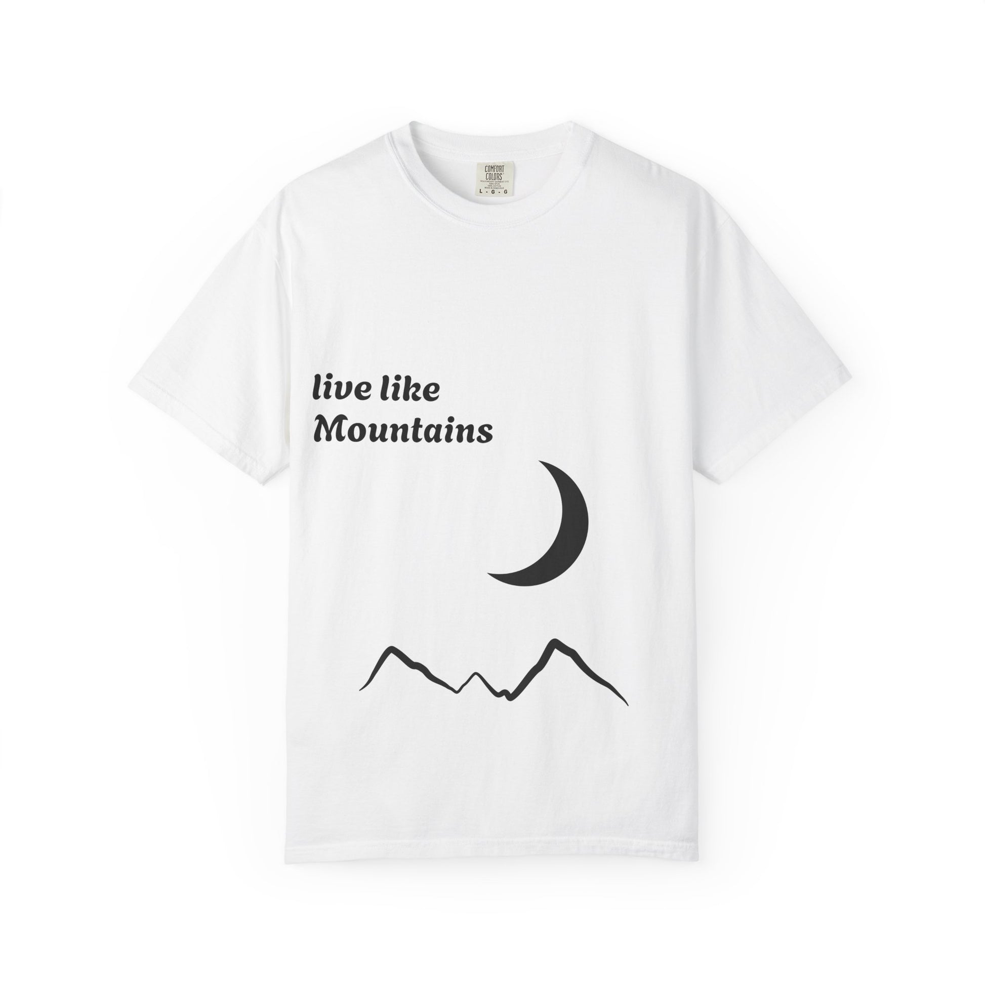 Minimalist Mountain Range T-Shirt: Your new favorite tee for the trail or the city. This striking line art graphic features a geometric mountain silhouette and a crescent moon, capturing the spirit of adventure and high-elevation exploration. Perfect for hikers, nature lovers, and anyone who appreciates a clean, aesthetic, unisex design. Crafted for comfort and designed for the trailblazer.